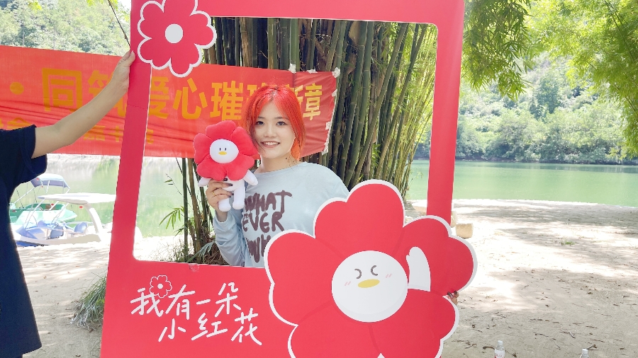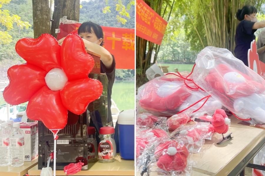我们结合腾讯公益小红花ip元素制作合照板、种子卡片,同时运用小红花气球、发夹、冰箱贴,小红花人玩偶等物料,吸引更多游客与市民成为公益同路人。