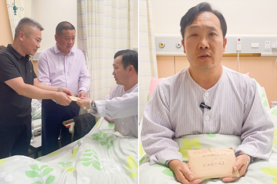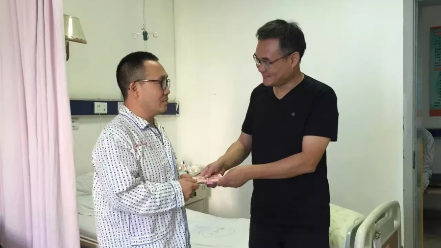 最激动人心的时刻莫过于善款的交接。温州市随州商会秘书长后永胜捧着装有善款的信封,走到敖辉面前,表情庄重而又充满温情。他将信封递到敖辉手中,说道:“这是商会以及同乡老家人对你的小小心意,祝你早日康复!” 敖辉接过信封,泪水夺眶而出,嘴唇颤抖地说道:“感谢老乡的援助,谢谢你们!”。那信封里装的不仅仅是钱,更是老乡们的爱心、希望和对生命的尊重。这一刻,病房里的每一个人都感受到了这份情感的重量,它如同一股强大的力量,将大家的心紧紧相连。