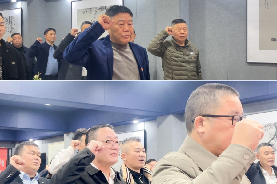 随后,在温州市随州商会拓展型党支部书记郑精兵的带领下,党员们重温入党誓词。面对鲜红的党旗,大家高举右拳,齐声宣誓,声音铿锵有力,眼神坚定执着。每一句誓词都承载着党员们对党的忠诚与热爱,对共产主义事业的不懈追求,重温入党时的初心与使命,再次激发了内心深处的责任感与使命感,为后续的学习活动奠定了坚实的思想基础。