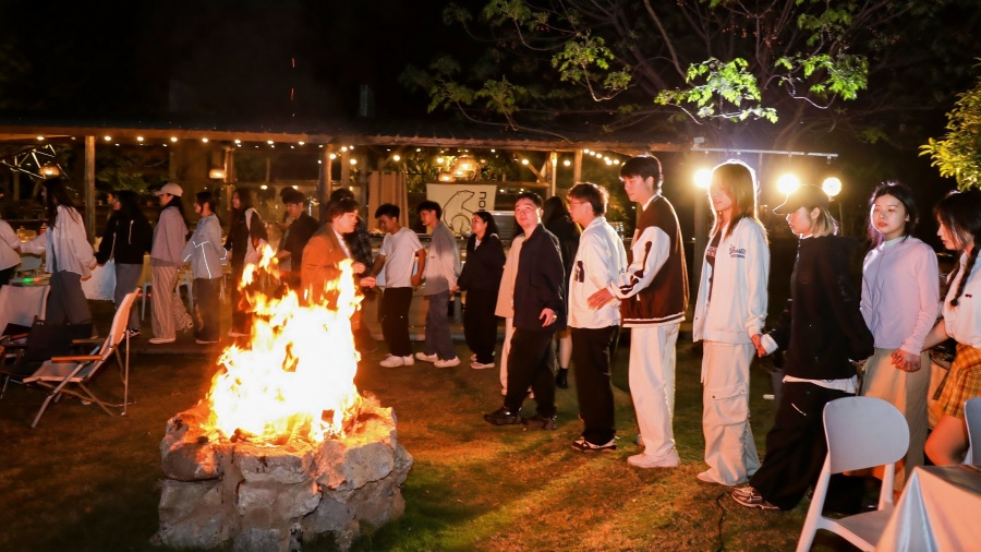 活动接近尾声,全员围着篝火手拉手,共同大合唱《小美满》,温暖的歌声在夜空中回荡,传递着满满的幸福与团结。