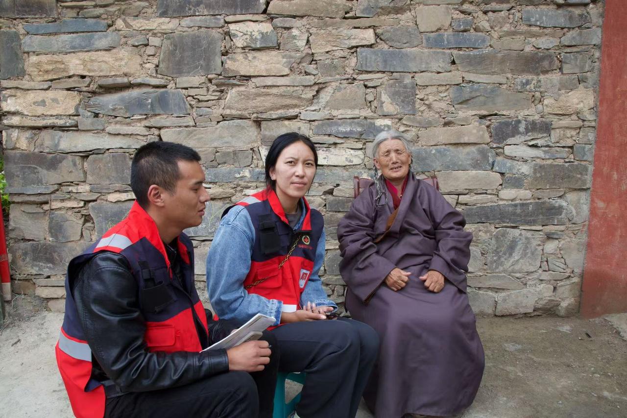 温州市天爱公益协会“爱在光明 救助眼睛”项目走进壤塘,救助眼疾患者。图为泽旺初(中)与当地红十字会工作人员走访慰问患者。受访者供图