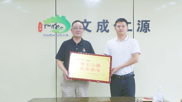 庄严的授牌仪式上,中共二源镇党委、镇人民政府将镌刻着“情系二源 筑梦童心”的牌匾赠予天爱公益。