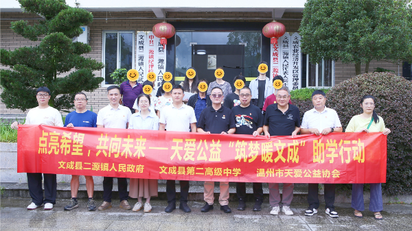 8月14日,中共温州市天爱公益协会拓展型支部委员会在庄朝龙书记的带领下结对文成县中共二源镇党委、镇人民政府,携手为12位学子发放助学金,用实际行动传递温暖与希望。我们特邀温州市优秀党务工作者、协会高级顾问黄珠韵老师,温州市随州商会党书记郑精兵,温州职业技术学院林文龙老师、陈豪老师,文成县第二高级中学林孟良老师一同前往文成二源镇人民政府。